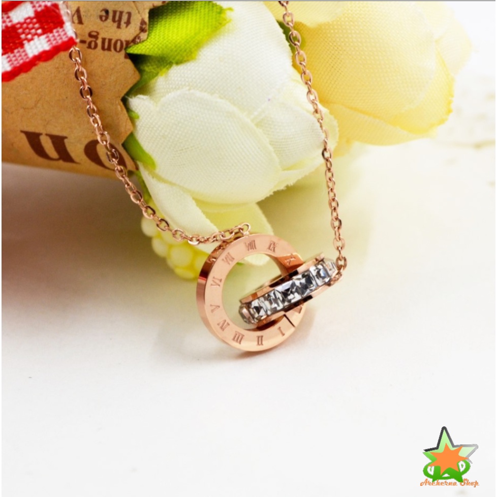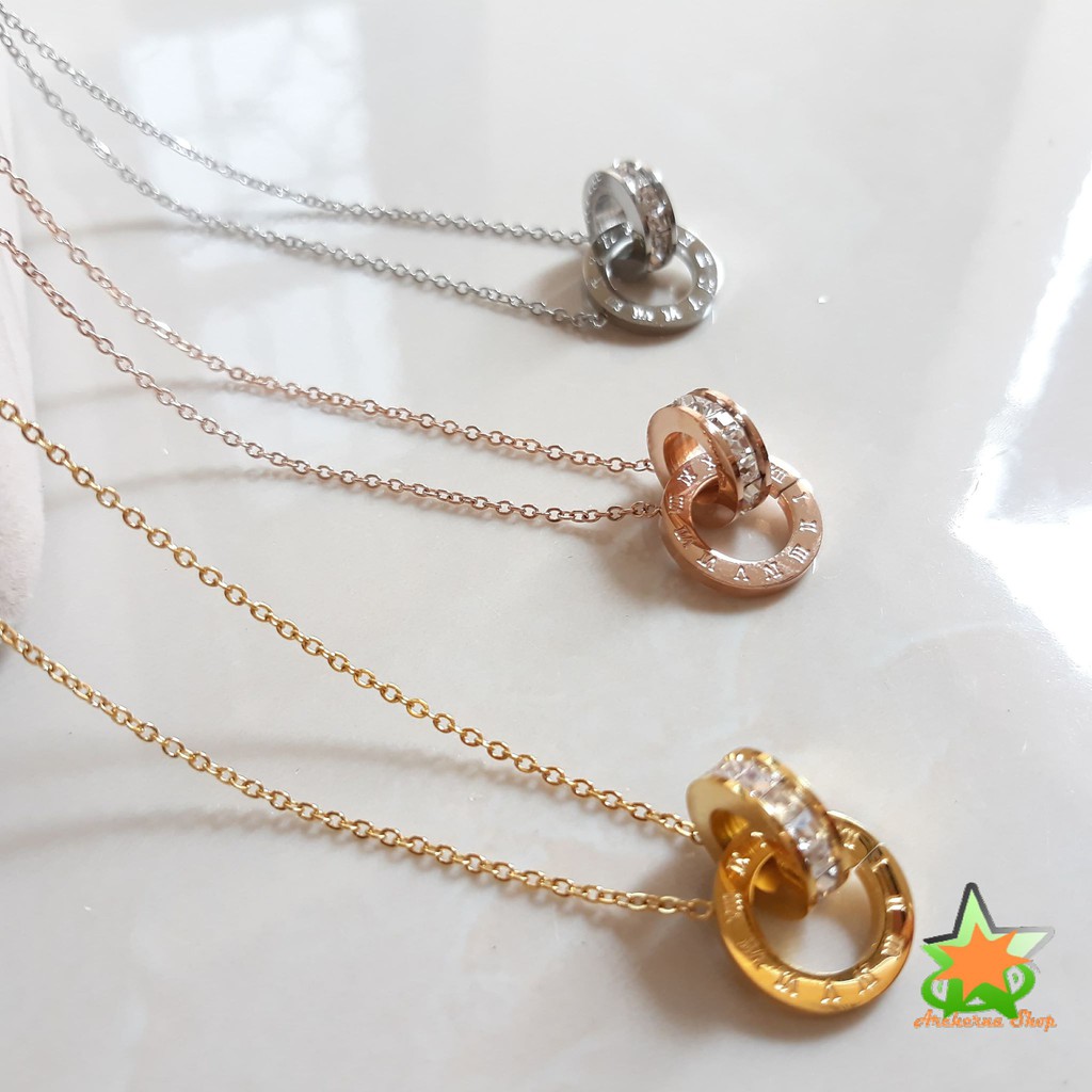 Dây chuyền titan cao cấp, mặt tròn đính đá