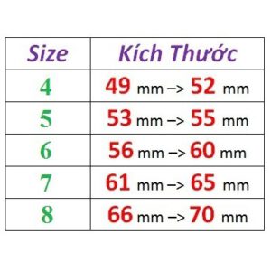 Bước 5: Các bạn hãy lấy số mình vừa đo được tra bảng dưới đây để xem mình đeo nhẫn size nào